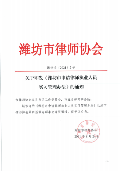 附件:关于印发《潍坊市申请律师执业人员实习管理办法》的通知
