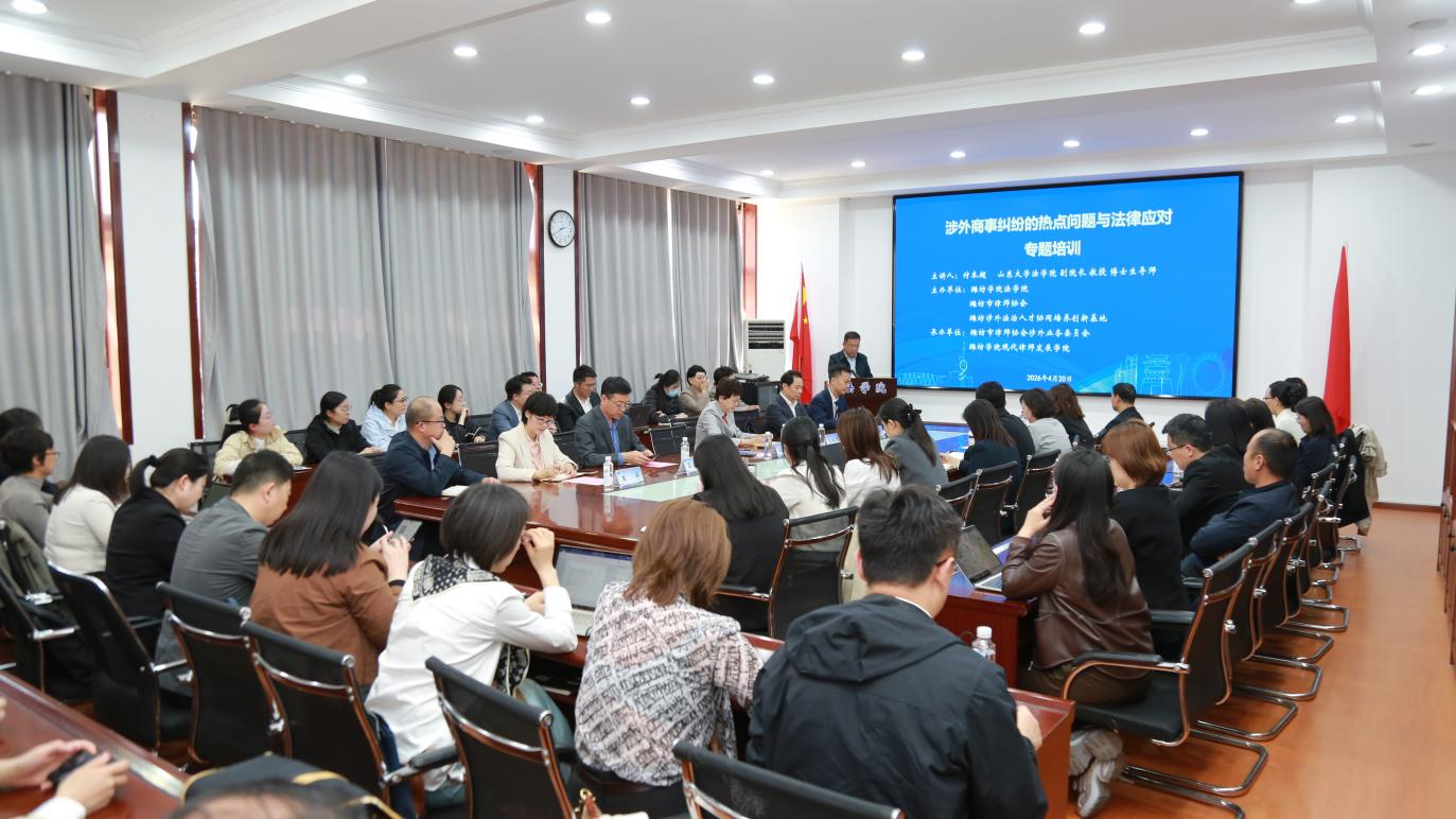 为提升全市律师涉外法律服务专业能力,推动涉外法治人才队伍建设,2026年4月20日,由潍坊学院法学院、潍坊市律师协会、潍坊涉外法治人才协同培养创新基地主办,市律协涉外业务委员会、潍坊学院现代律师发展学院承办的《涉外商事纠纷的热点问题与法律应对》专题培训班在潍坊学院顺利举行。培训班邀请山东大学法学院副院长、付本超教授现场授课,潍坊市律师协会高明芹会长在培训班开幕式致辞,潍坊学院法学院院长杜立聪作培训总结。
